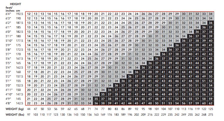 On the left-hand side of the BMI chart below, circle your height; then, on the bottom of the chart circle your weight. Find where the two of them intersect (where your height crosses with your weight) and you have found your BMI score!