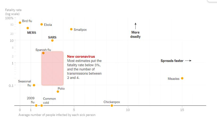 Here’s how the new coronavirus compares with other infectious diseases in terms of fatality rate and contagiousness